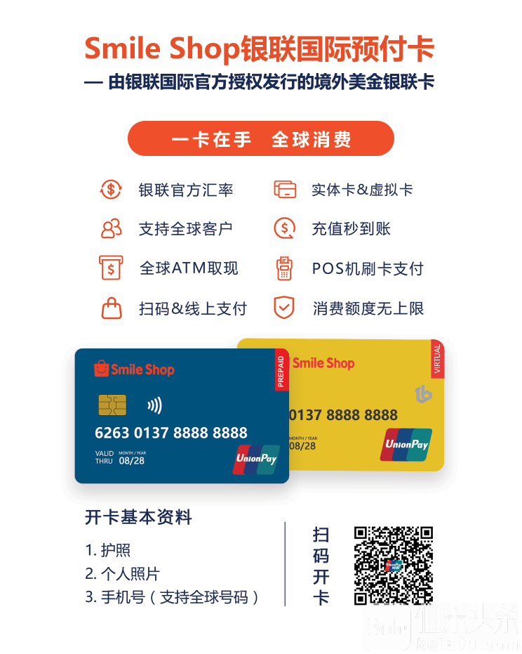 Smile Shop银联卡,一张卡,一个App,搞定全球取现和消费! |