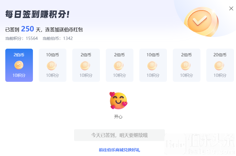 不知道还有没机会在300天的时候签到,现在先来签个到