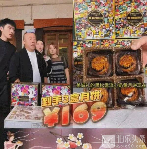 在直播间,小杨哥大杨哥两人,带上曾志伟一起直播了一款名为“香港美诚”的黑松露流心奶黄月饼。