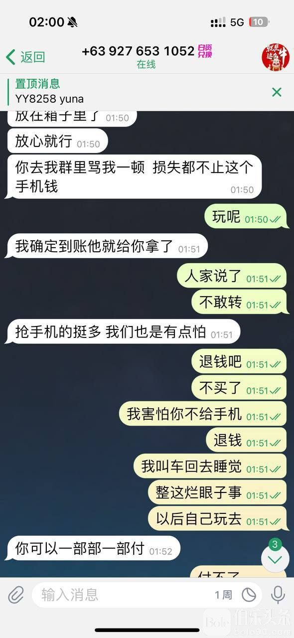 然后于娜就开始一会叫回饭店一会叫去名门,不知道到底安的什么心,就感觉情况不对劲,他家送货到小菲也像吸毒了一样,到这就一直催着转💰,别说手机了,手机盒子都没有看见