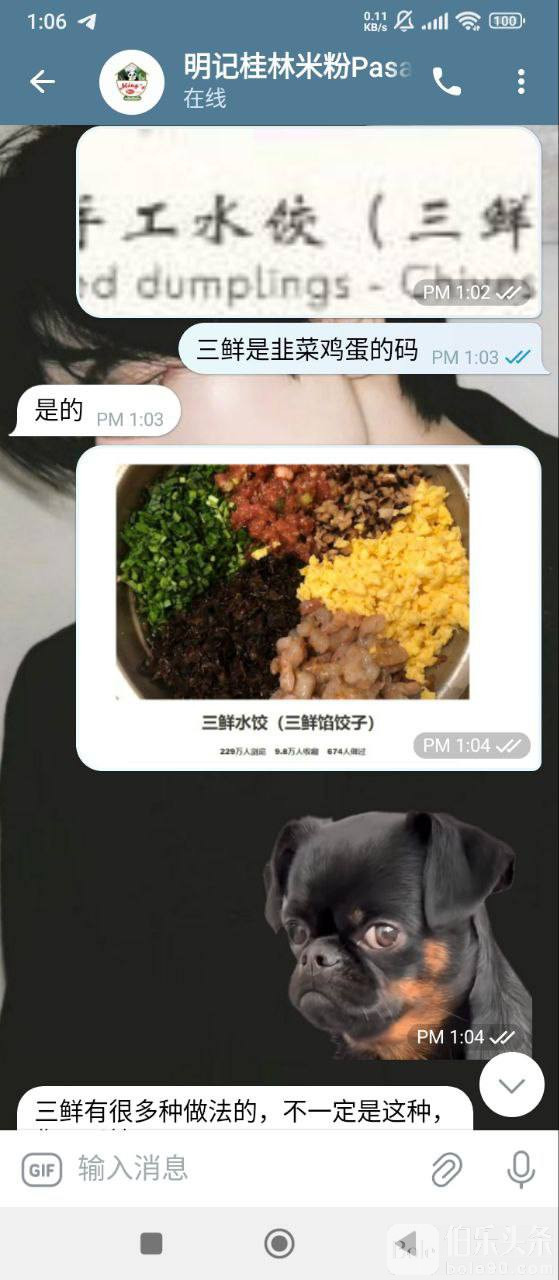 然后我也有跟商家说这样备注会误导消费者,我们也是本着让商家改下这个菜单的备注,为让后面定这个饺子没有我这样的疑问做出的提议,但是商家非说他们家做了几年的三鲜饺子就是韭菜鸡蛋馅的,而且自己都百度搜索出来给三鲜馅的成分,结果又说什么这个价钱买不起虾仁。