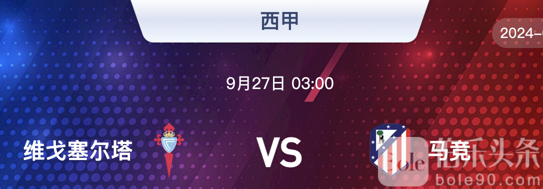 今天推荐的比赛是 9月27日 03:00 西甲 维戈塞尔塔vs马德里竞技