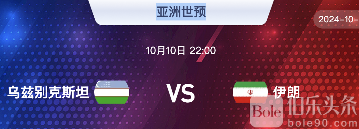 今天推荐的比赛是 10月10日 22:00 开赛的 亚洲世预 乌兹别克斯坦vs伊朗