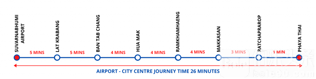 素万那普机场快速铁路线(The Suvarnabhumi Airport Link - SARL)服务时间06:00-24:00