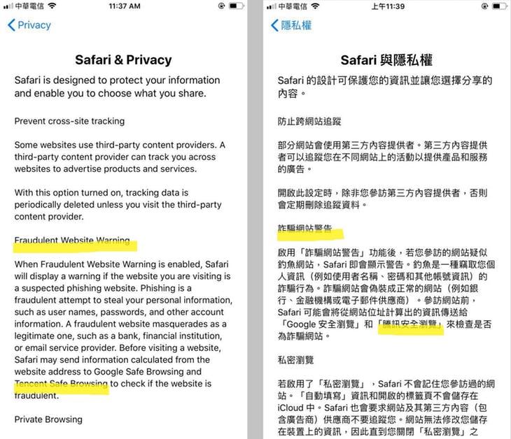 当然,iOS 用户可透过禁用该功能避免 IP 位置被记录,却也会使 Safari 容易连结到欺诈性网站。