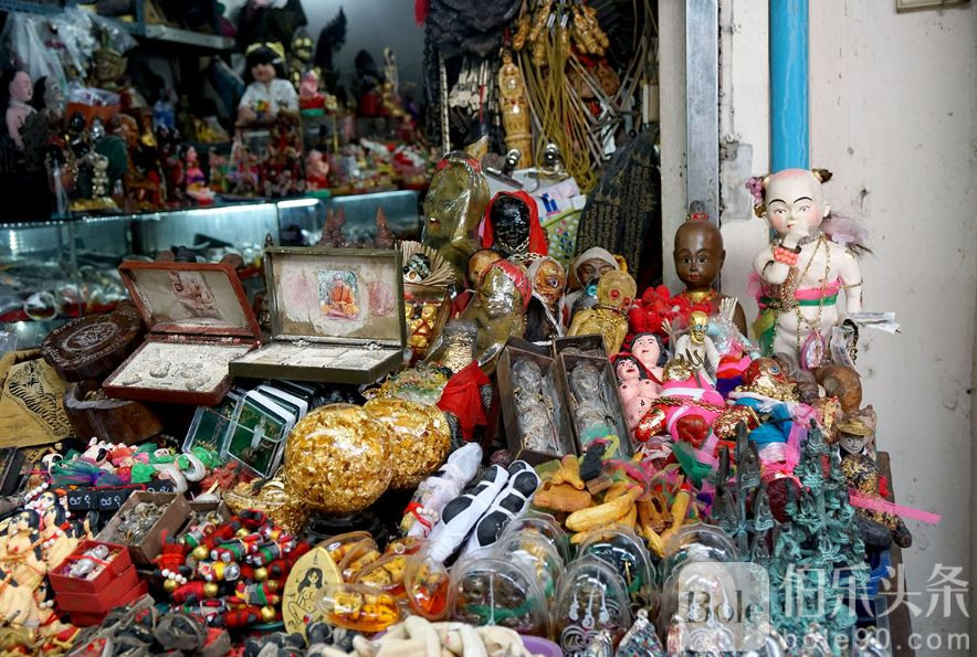 ▲比较偏门的佛牌刀(灭魔刀)、护身符布、金箔符卡、古曼童、娃娃神(古曼丽)、红眼帕婴、药油等等都能找到。