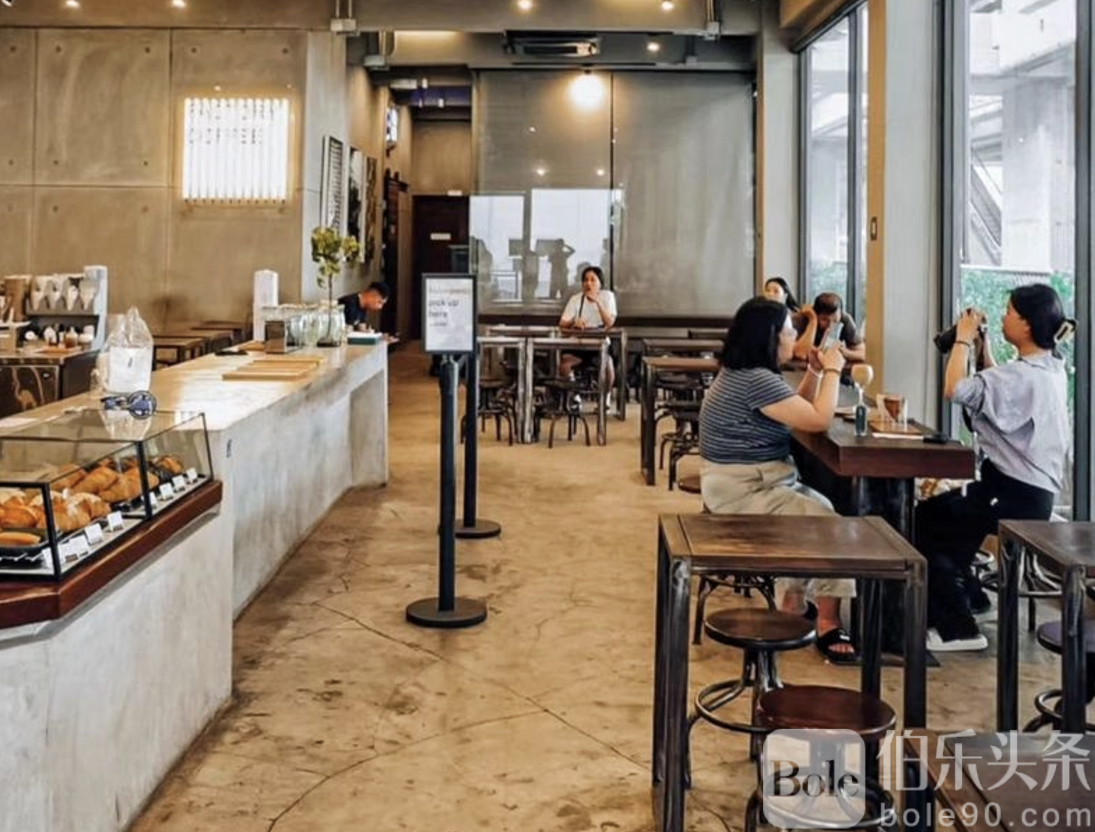 号称曼谷排名第一的Factory Coffee是泰国本地拿奖无数的一家咖啡店,无论是出品形式还是口味呈现上,几乎已经把奶咖的风味做到了极致。而且咖啡店的地理位置优越,位于曼谷市区繁华地带,不仅停车方便,离BTS Phayathai站也超近,到站后往5号出口方向走,就在出口左侧一下扶梯边就能看到咖啡店位置。 整个Factory Coffee的面积不算很大,甚至一进门口就能将店内环境一览无遗。馆内一分为二,左边是咖啡制作吧台,客人多的时候七八位咖啡师一起在此忙碌。右边是简约型的餐桌,整个就是水泥、质朴木材打造而成炫酷工业风咖啡馆。由于店面不是很大,生意又火爆,Factory Coffee常常属于爆满需要排队等位的状态。