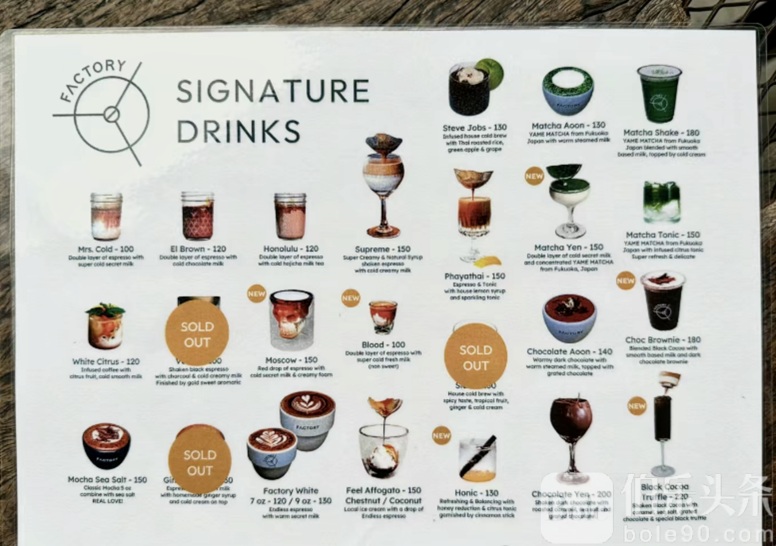 至于你要问为什么Factory Coffee吸引如此多人慕名前来打卡?是否还有其他原因?咖啡本身上有何独特魅力?除了环境时尚,服务完善还有冠军咖啡师的加持,那就是他们家的饮品选择丰富,总有适合你的那杯。自烘豆品质好,出品佳,口味独特。形式感强,精致,怎么拍都好看。还有最重要的一点就是价格实惠,整个咖啡店的咖啡饮品价格均在160铢左右,看起来炫酷复杂的特调也就人民币20多一杯....这有何理由不让人喜欢?
