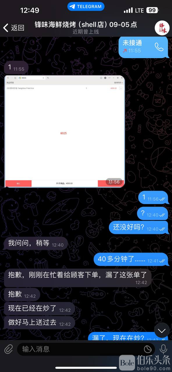 刚才点楼下shell 楼下锋味烧烤点个餐40分钟问了一下说漏单了现在在炒