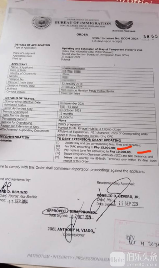 我这是自己去移民局办的,这价格应该很低吧。希望在菲的跟我情况一样的可以这样自己去,就等待期长,当然 加钱给官员可以加急