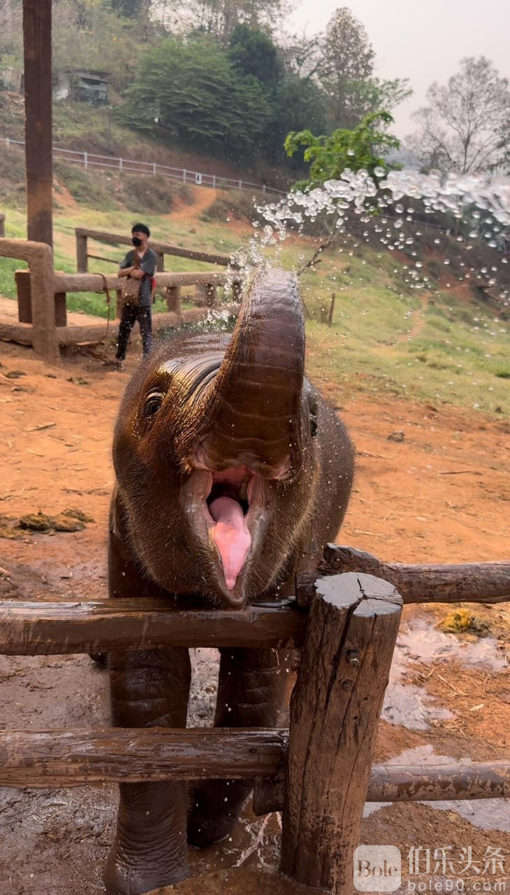 📍 有些大象的鼻子上可能会沾上泥巴,所以穿着白色衣服的朋友要小心,防止弄脏衣物哦!