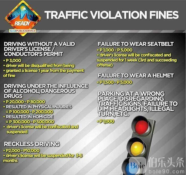 • 车证驾照将上缴及停用一星期(三次犯规)