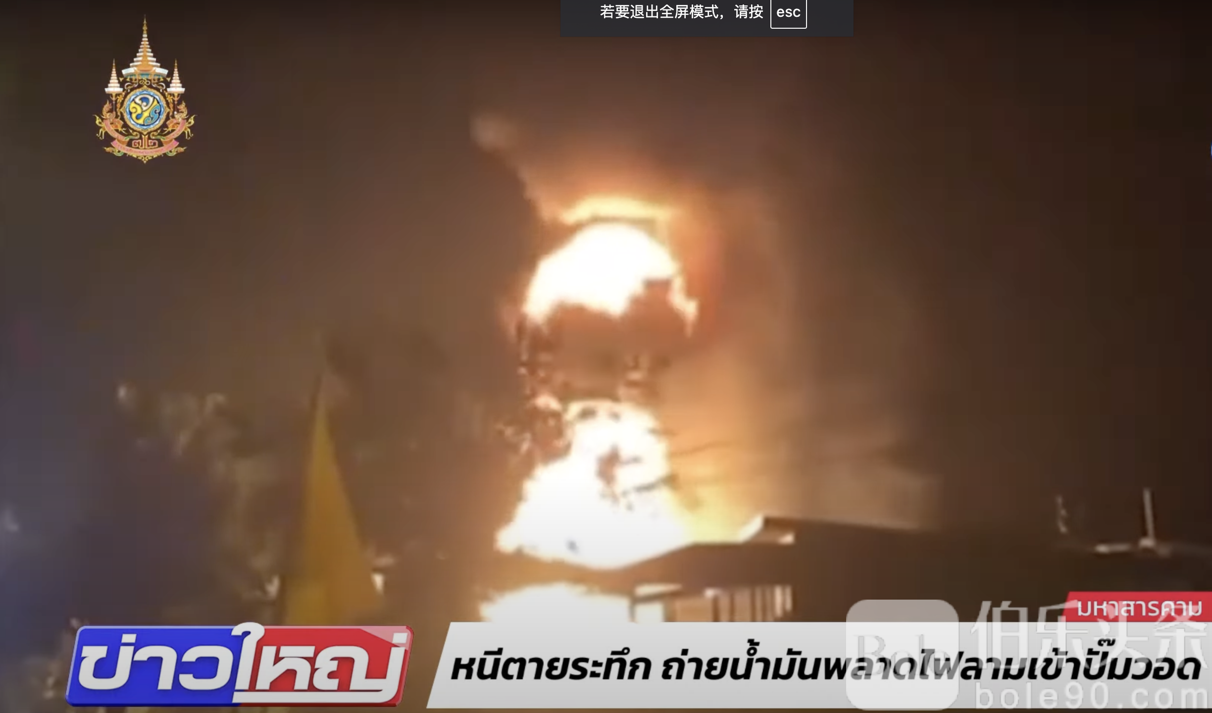 10月26日凌晨,泰国玛哈沙拉堪府清延县一家名为“Chok Bunma”的加油站发生严重火灾。事发时,油罐车正在卸油时突然起火,火焰迅速吞没油罐车并蔓延至加油站,随后爆炸声连连,至少响了4至5次。当地居民和在场工作人员惊慌失措,甚至有人跳墙逃命。