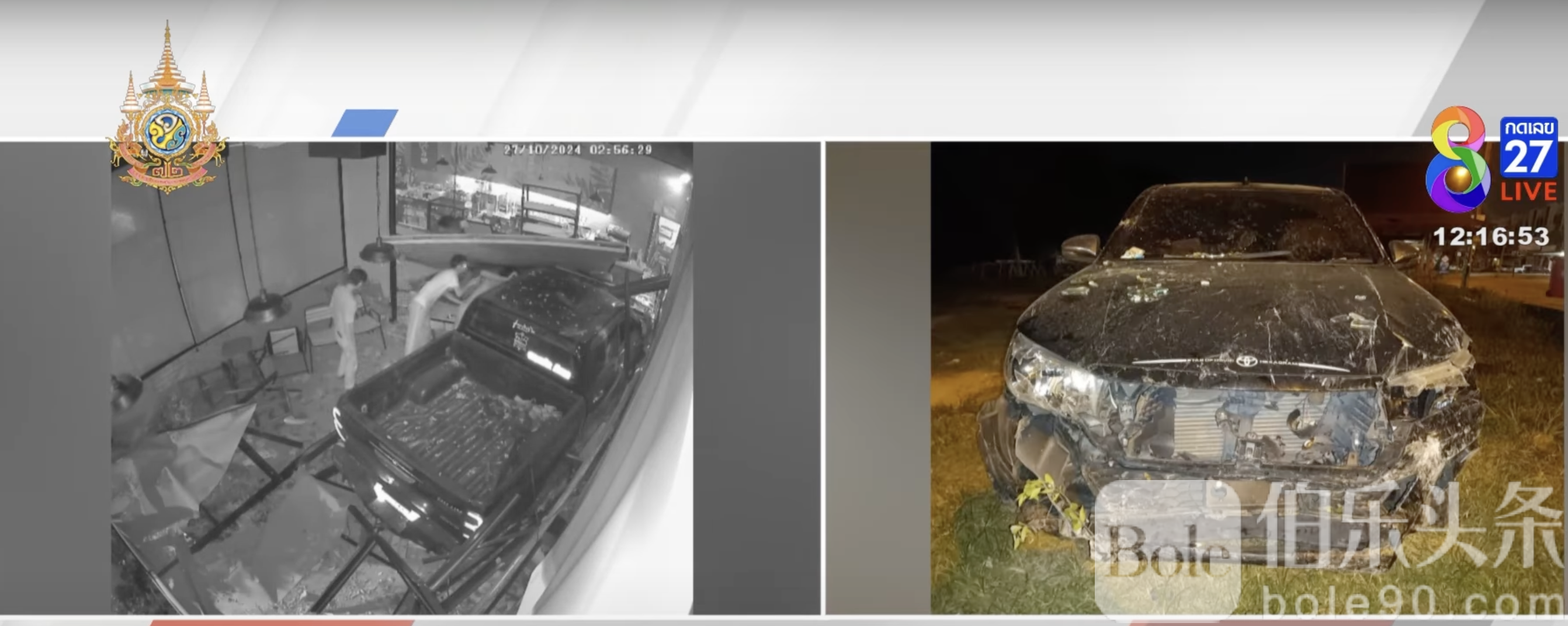 事发时,咖啡店正值关店时间,所幸无员工或顾客受伤。咖啡店老板在接到警方通知后匆忙赶到现场,看到店内一片狼藉不禁膝盖发软。监控录像显示,肇事车辆从数百米远处失控滑行,穿越人行道直冲咖啡店,目前损失估计超过100万泰铢。