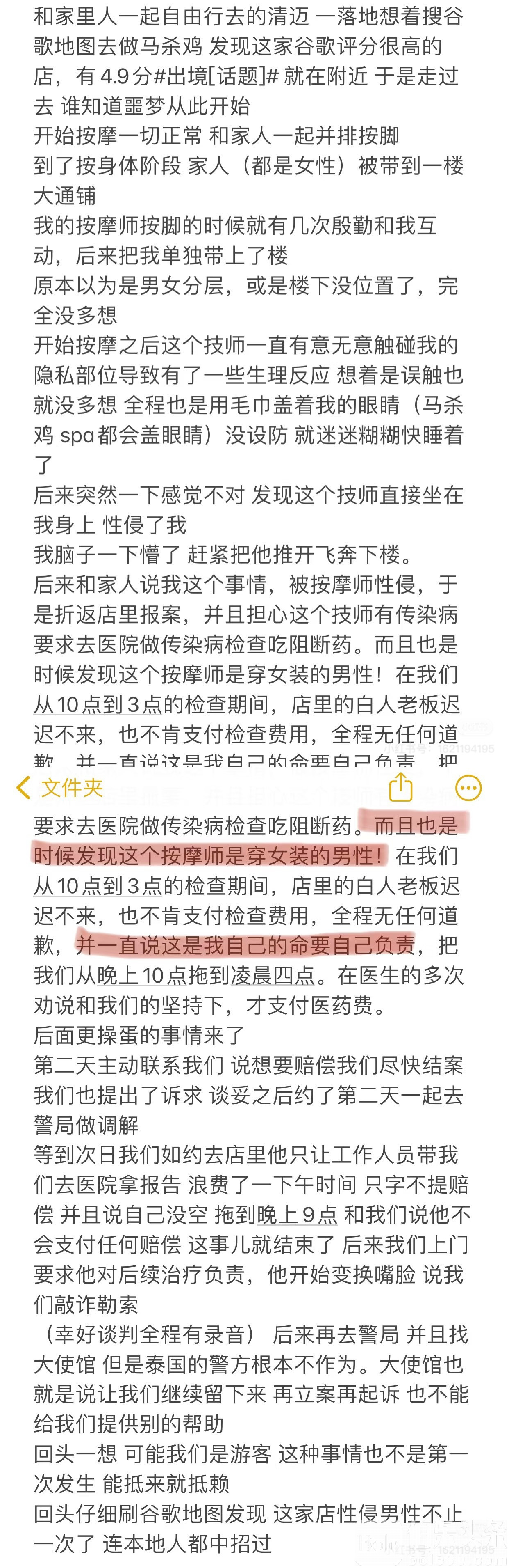 近日,一名中国男游客在泰国清迈一家按摩店声称遭到性侵,并在社交媒体上发帖维权。中国驻清迈总领事馆确认已接到相关求助,并正在协助处理此事。