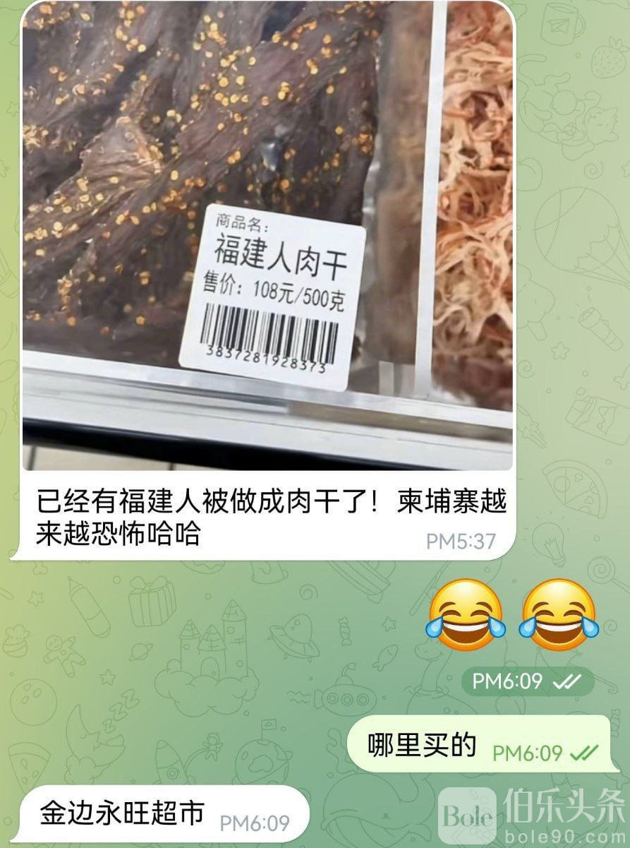 刚刚在金边永旺超市发现有卖人肉干,已经有福建人被做成肉干了!柬埔寨越来越恐怖