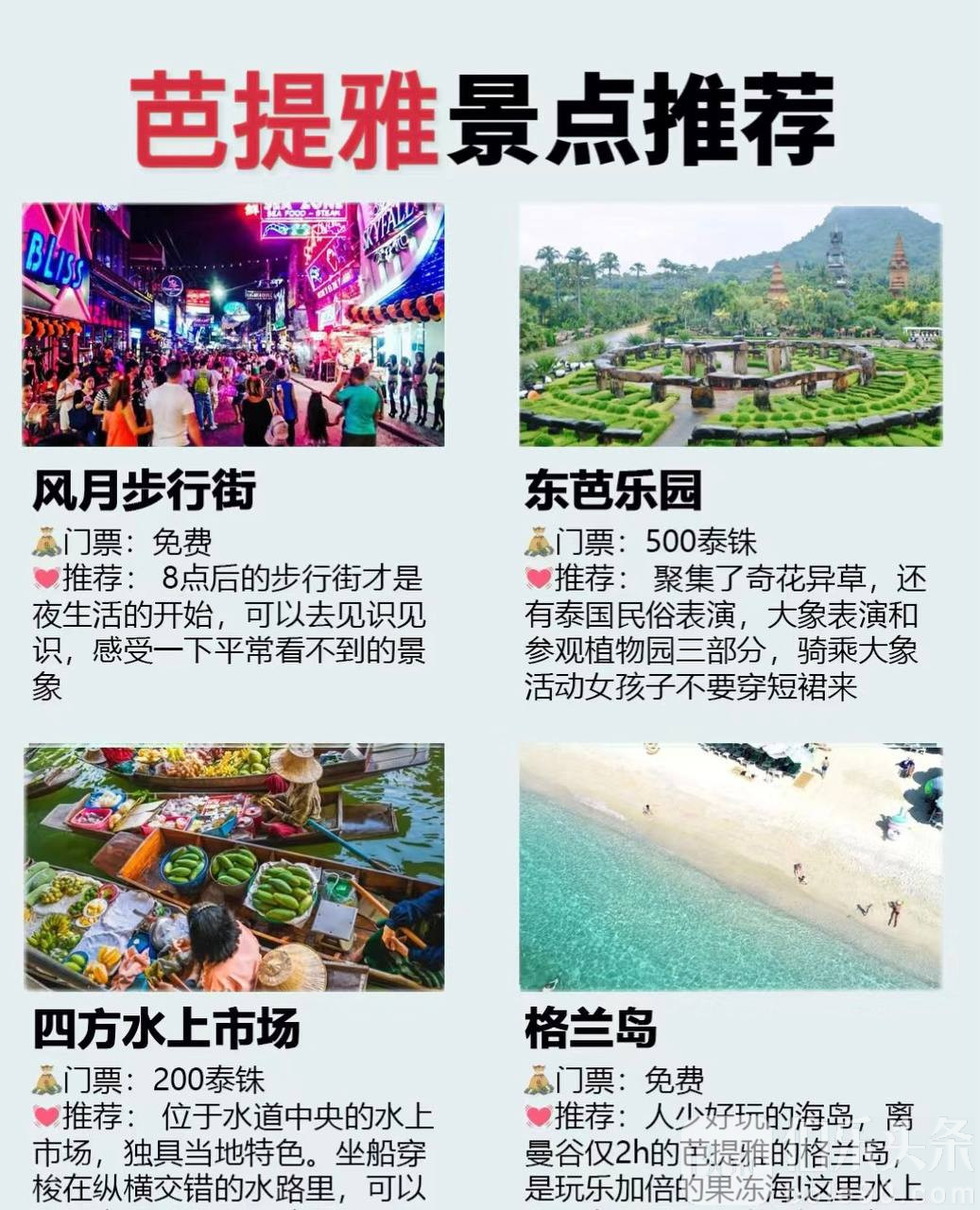 芭提雅必打卡景点:东芭乐园、四方水上市场、格兰岛,风月步行街