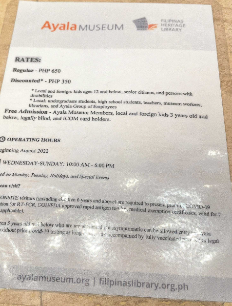地址:Ayala Museum,Greenbelt Park, Makati Avenue, corner Dela Rosa Street, Ayala Center, Makati, Metro Manila;