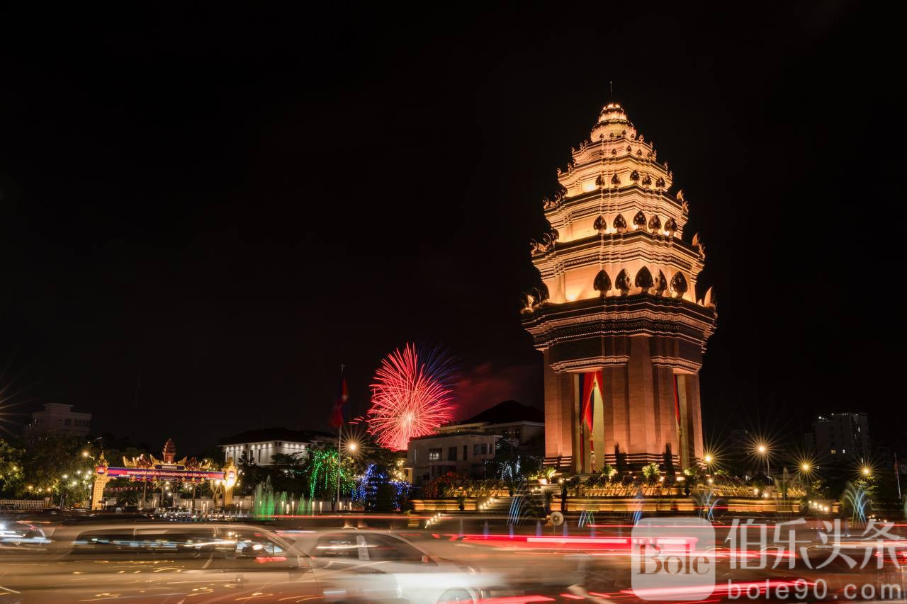 昨晚,金边王宫前烟花绽放,以纪念柬埔寨独立71周年。