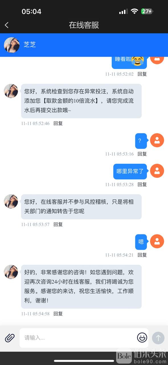 昨天晚上没意思,充值300打到3000多,就不给出款,说注单异常,给卡10倍流水,希望各大玩家不要来这个台子了