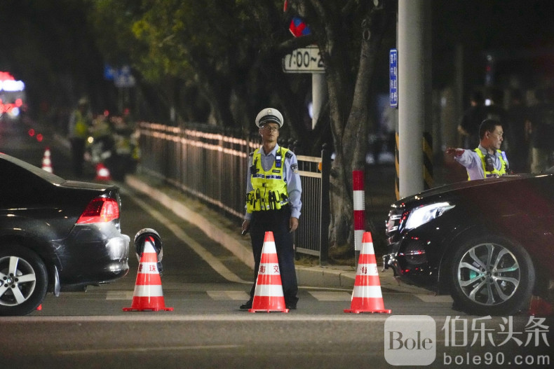 周一晚上,一名男子驾车冲撞正在中国南方城市珠海锻炼的人群,一名安全官员在体育中心附近站岗。警方称,至少有 35 人死亡,43 人受伤。司机在现场被拘留。