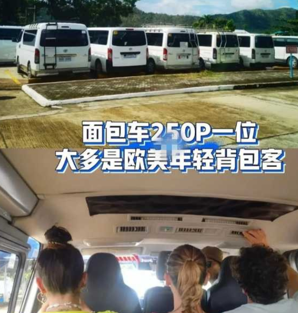 机场停车场有很多面包车,250P一位,直接送到预定的酒店门口,从机场到科隆镇大约40分钟车程,拼车的可能是来自各个国家的游客~热情似火