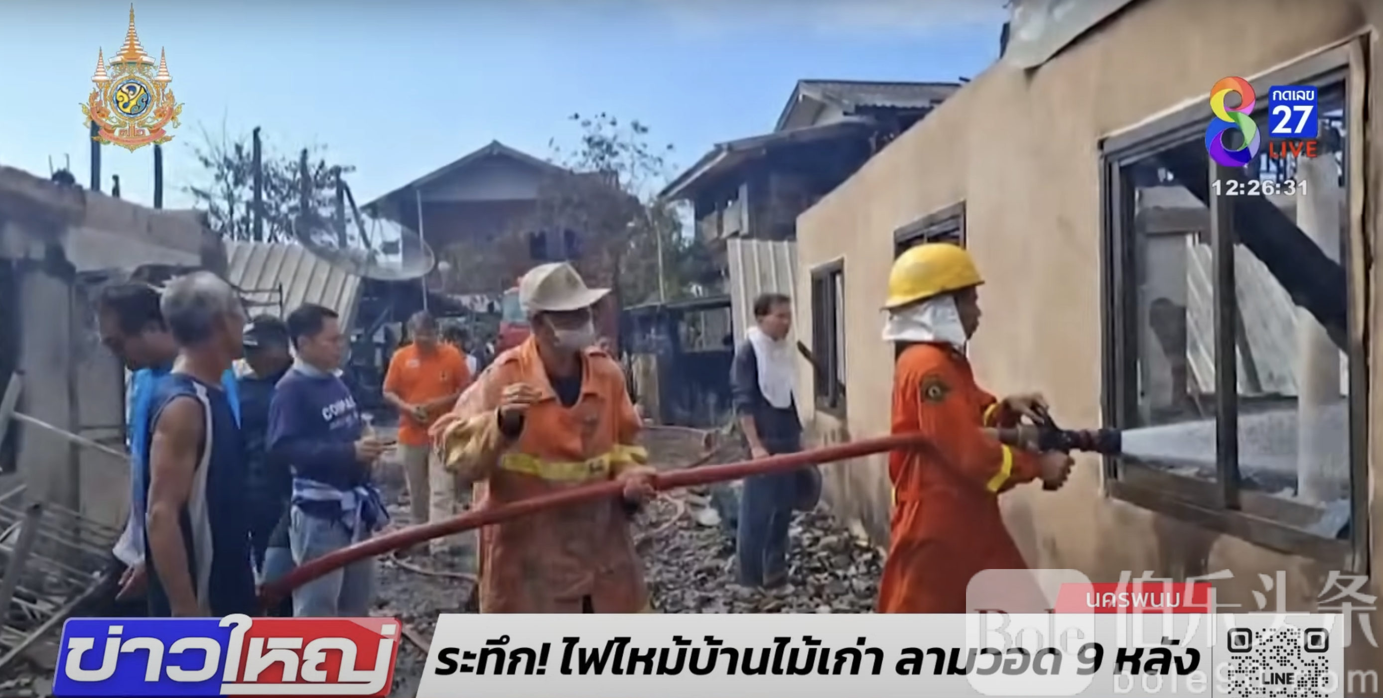 今天早上7点30分,泰国那空拍侬府Si Songkhram县第11村的Nakam社区发生火灾。起火点从一户人家迅速蔓延,短时间内烧毁了九户木质老房。这些房子多为数十年老木建筑,成为极佳的燃料。火势猛烈,七户完全被烧毁,两户部分损毁。幸运的是,没有人员伤亡报告。目前,相关部门已在紧急安排临时住所供受灾居民使用。初步怀疑火灾是由电线短路引发的。