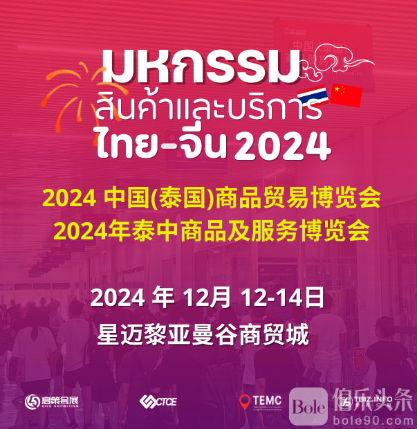 2024年第二届中国-泰国商品及服务博览会定于今年12月12至14日在位于邦纳-达路26公里处的曼谷星迈黎亚商贸城A区举行,整个展会占地面积10000平方米。这将是2024年该商城举办泰国最大的泰中商品及服务博览会。 今年举办的博览会最大特色是两个展会同步上演,即“2024中国(泰国)商品贸易博览会(CTCE)”和“中国(泰国)家电及消费电子展(CTAS)”。展会得到宁波市商务局、余姚市商务局、慈溪市商务局、泰商务部和相关在泰中资行业协会等单位的大力支持。此次展会还汇聚了泰中两国300+优质企业,包括来自中国宁波、慈溪、余姚等制造业之都的众多制造企业,还有来自已经在泰国落地深耕的众多实力华商企业参展,更有来自泰国本地优质商业服务提供商、特色商品展销企业的参与。