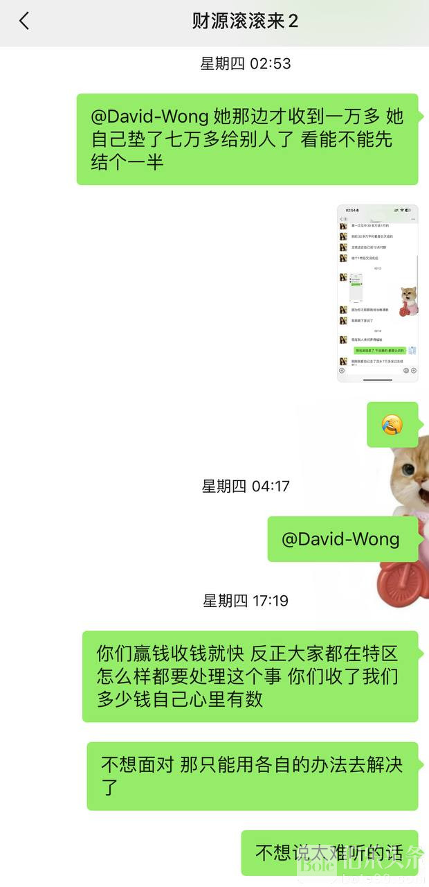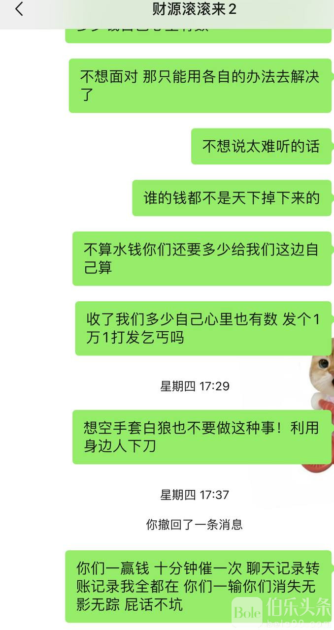 到处骗吃骗喝。套路人家,骗钱!我朋友告诉我可以合作收六合菜!开始合作得好好的我们这边输都有转钱过去,后面中了一次大的他们就转了个1万1打发乞丐,玩不起还要叫我朋友来找我合作,搞得我自己赔了十多万!现在一个个都不回我我信息,中了三十万不给处理,没钱赔就只退回原来本金  .