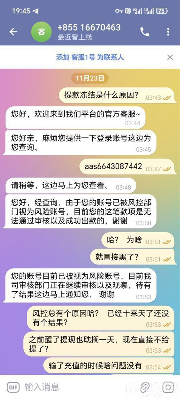 一个黑平台 FB,10000u都黑。联系客服一直拖,后面会放聊天记录。也是在飞机上看到的推广主打体育,看到就想着换个平台玩玩,前面玩累计输了4-5千u充值提款都没问题,后面赢到10000u提款直接不给提(累计算下来赢5000u左右,没细算)。没想到这么大个台子10000u都黑。曝光出来让大家避坑,远离这种黑平台。还在玩的想办法提款出来换台子吧!
