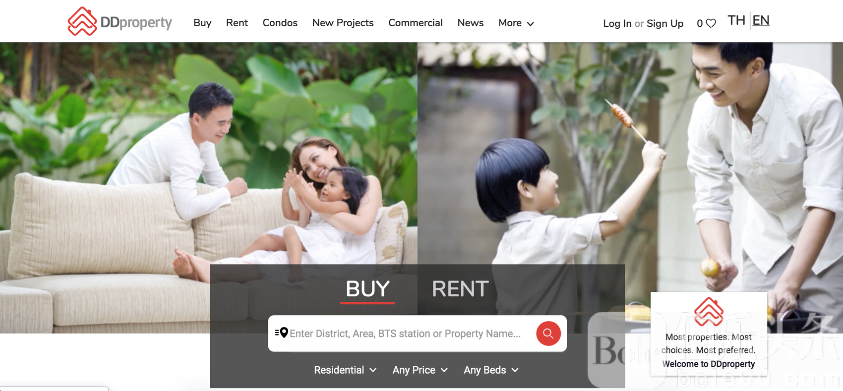 DDproperty 是泰国最大房地产门户网站之一,属于 Property Guru 集团。用户可以在网站里可以找到泰国的新房、公寓、地产、办公商业物业和房地产代理等最新信息,可在平台上买卖、租赁房产。DDproperty 域名注册于 2004 年,网站在 2010 年推出。