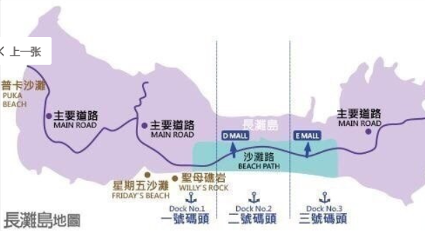 长滩岛全长只有7公里,分为中部、北部和南部。岛上主要有两条平行的马路,一条是横贯南北的Main Road,机动三轮车及汽车只能在这条路上通行;另一条是White Beach Path,边上都是各式餐厅,酒店和商店。