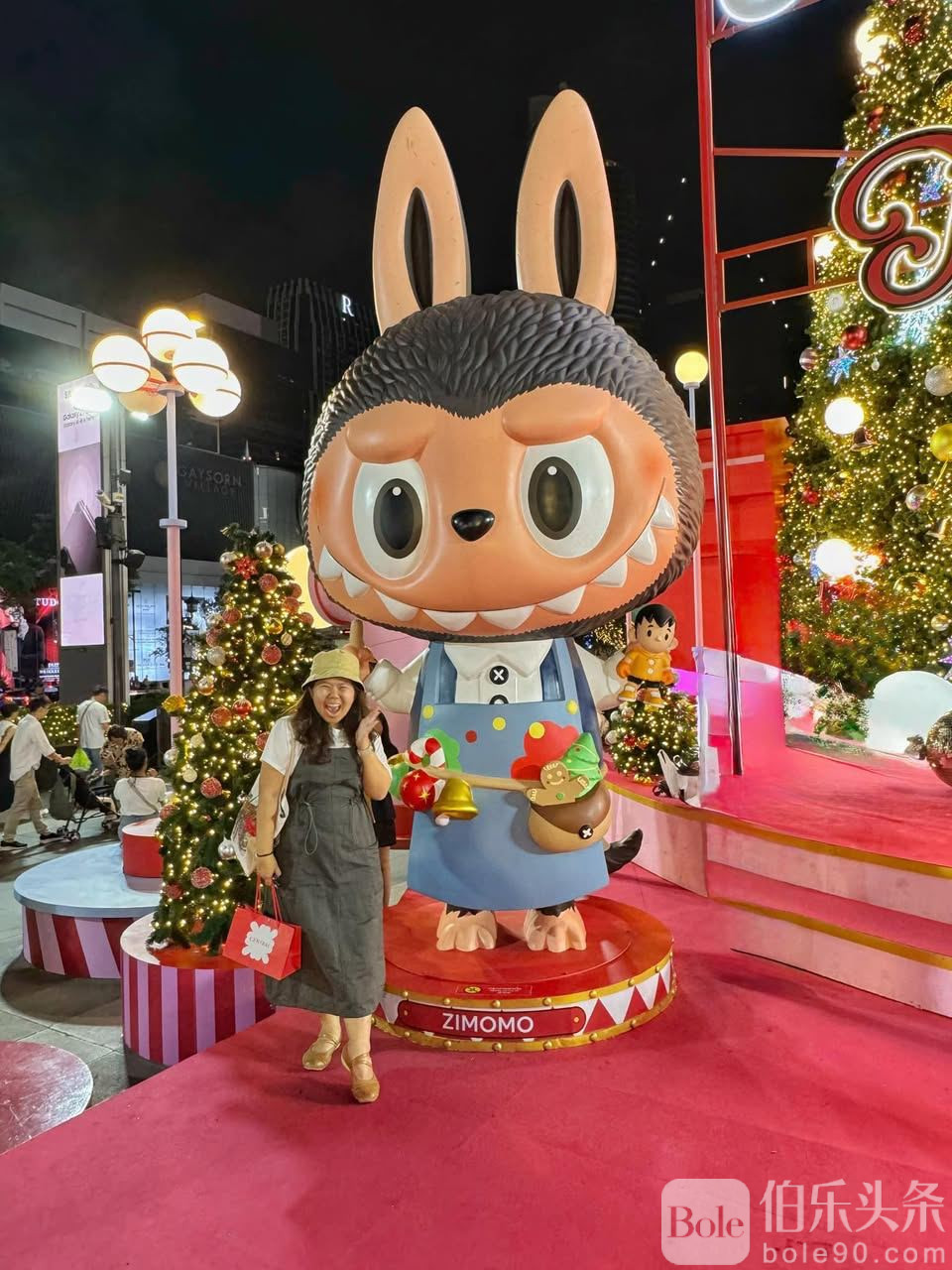 泰国曼谷CentralWorld户外打造“艺术玩具圣诞村”走进23个超人气角色的奇幻世界。 萌萌的Labubu圣诞树强势登场,Zimomo、Flappy、Vincent等小精灵都在!