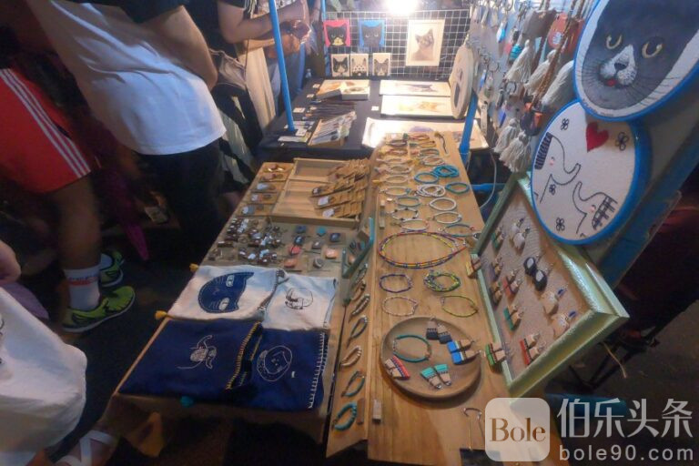周日夜市里面有很多手工摊贩,像是手工钱包、手工小物等,很多摊贩还可以提供客制化的服务,例如在商品上面帮顾客绣上名字等。因为文创性质颇高,在周日夜市也常常可以看到街头艺人在表演喔。