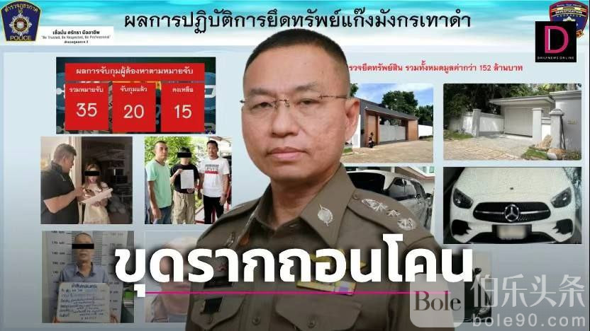 近日,府警第二区调查司再扩大调查范围,逮捕了该洗钱网络另外4名嫌疑人:3名泰国人和1名中国人,查获资产总额达1.52亿泰铢