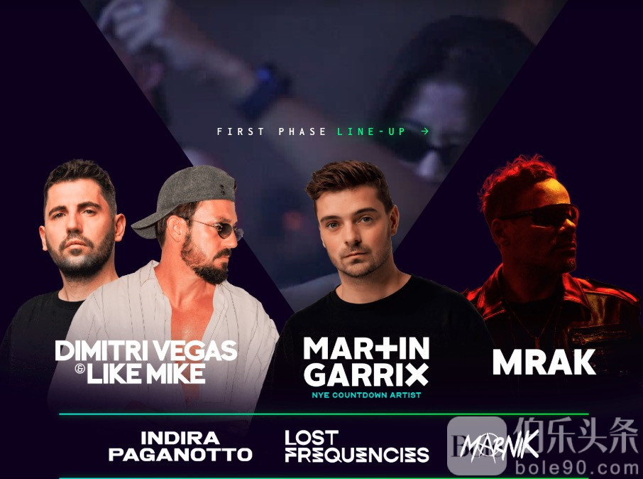 2024年除夕倒计时的官方艺术家 Martin Garrix,以及 Dimitri Vegas & Like Mike、MRAK、Lost Frequencies 和 Indira Paganotto 等传奇DJ将齐聚一堂。