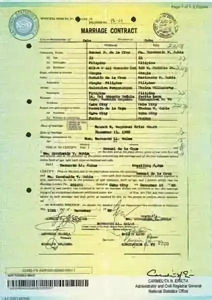 约等待一个月左右,菲律宾国家统计局PSA(以前叫nSO)就会核发结婚证书(Marriage contract)。