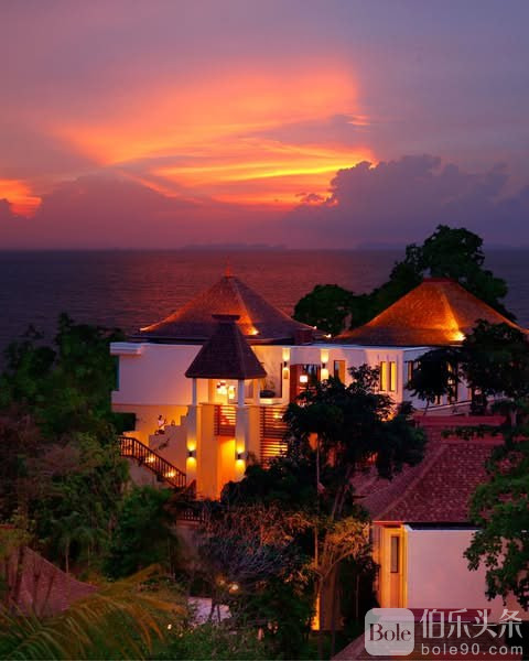 坐落于自家的私人海滩,四周环绕着热带景观 🌴