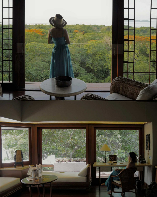 顶级度假除了隐秘、宁静、奢华,还有无微不至的服务。房间准备了沙滩拖,编织包,男女沙滩帽 甚至还有雨衣