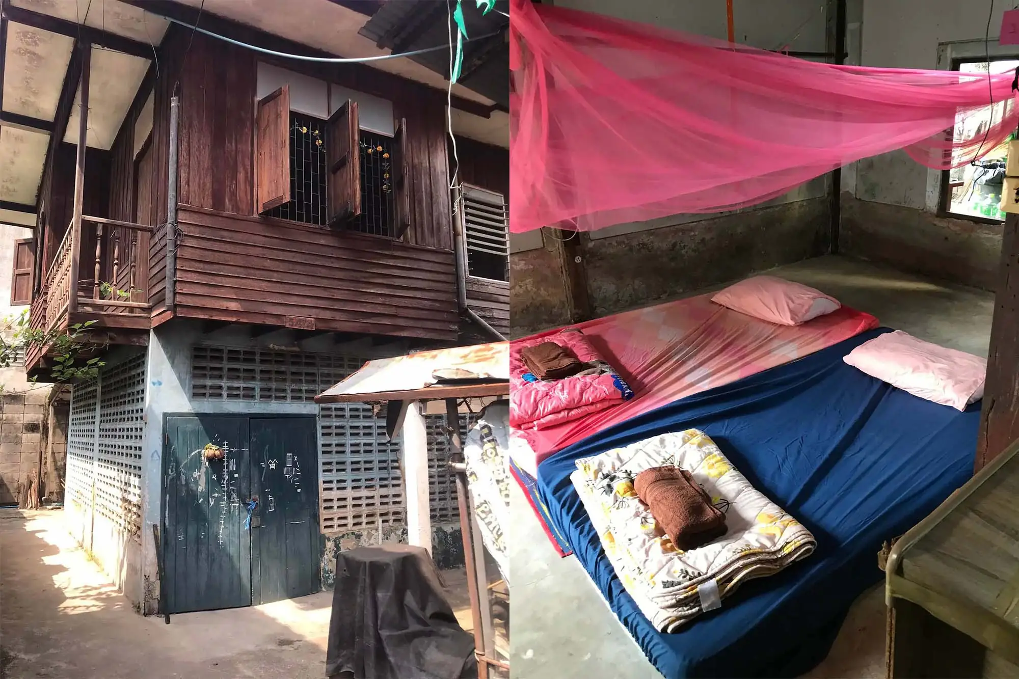 這是一棟泰式木製老屋,屋主是一位年輕的泰國人,這房子是他從叔叔那裡繼承的。他坦言自己怕黑又怕鬼,因此選擇將房間以19泰銖的超低價出租,希望有人能和他一起住。