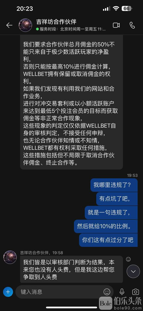 10月给30%佣金我以为是我的问题继续发展,11月佣金正常,12月只给10%佣金,一共八个会员四个输钱,流水是存款金额的10倍。这么质量得会员都要扣我全部佣金,完完全全的明目张胆的黑,代理客服爱答不理,就是不回消息,复审也不给