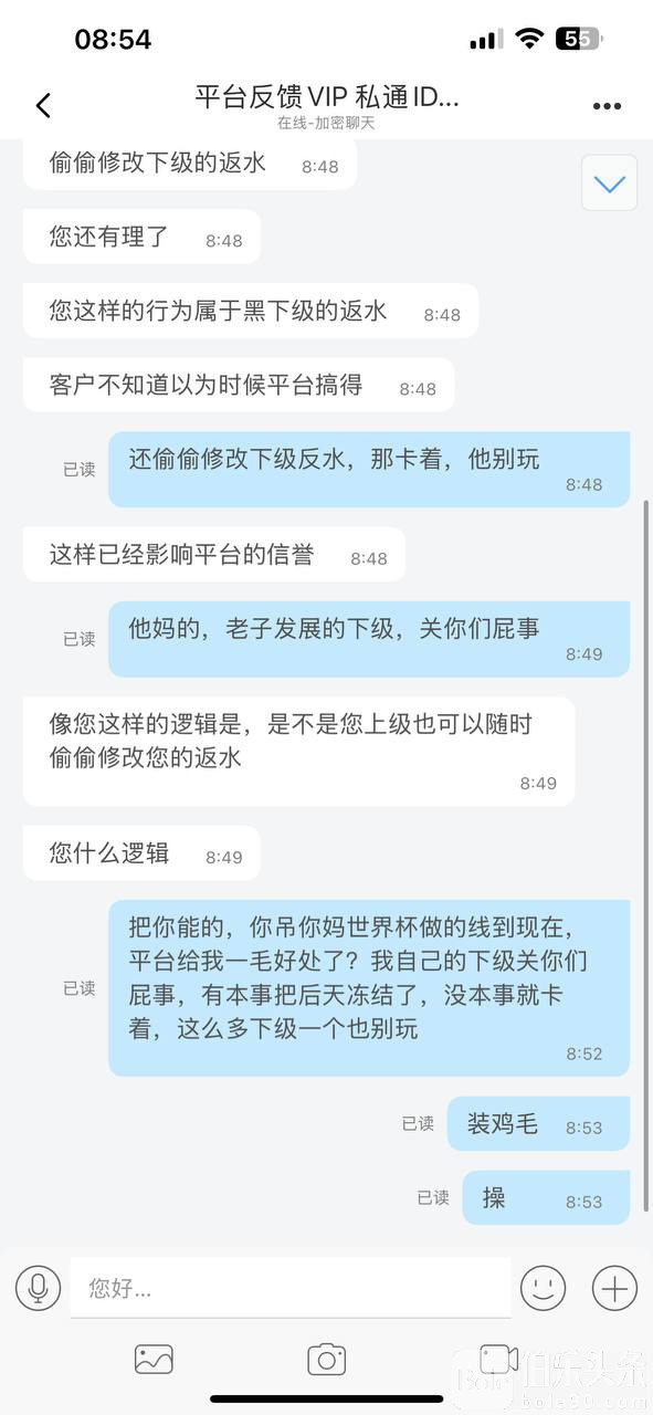 本人于22年接触开始做彩娱乐,截至目前已有2年多,线下发展代理玩家几十个,今天突然佣金取款驳回,让我下载个APP联系他们专员,联系后说我修改下级代理返水,我早特么修改一年了,我自己的代理玩家我爱给不给,装个逼还说限制就限制着