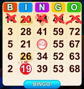 专业人士叫号,就像拍卖会上的拍卖师一样。通常在1-15中选择B对应的数字,16-30中选择I对应的数字,31-45中选择N对应的数字,46-60中选择G对应的数字,61-75中选择O对应的数字。游戏者根据叫号,迅速找到在卡上的这些数字,并做出标记,只要有一个游戏者根据叫号,描出了BINGO图案,那么这一轮的游戏就算结束,随后开始下一轮的游戏。