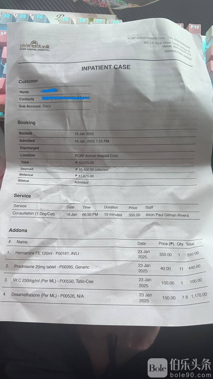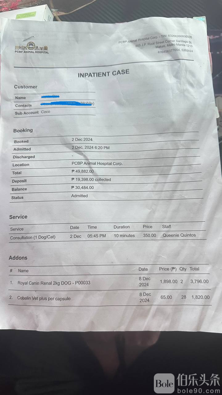 费用我也不说贵不贵了!看了两次前后总花费10万+比索,我为了我的狗我可以接受,但是不能给我狗整死了吧?