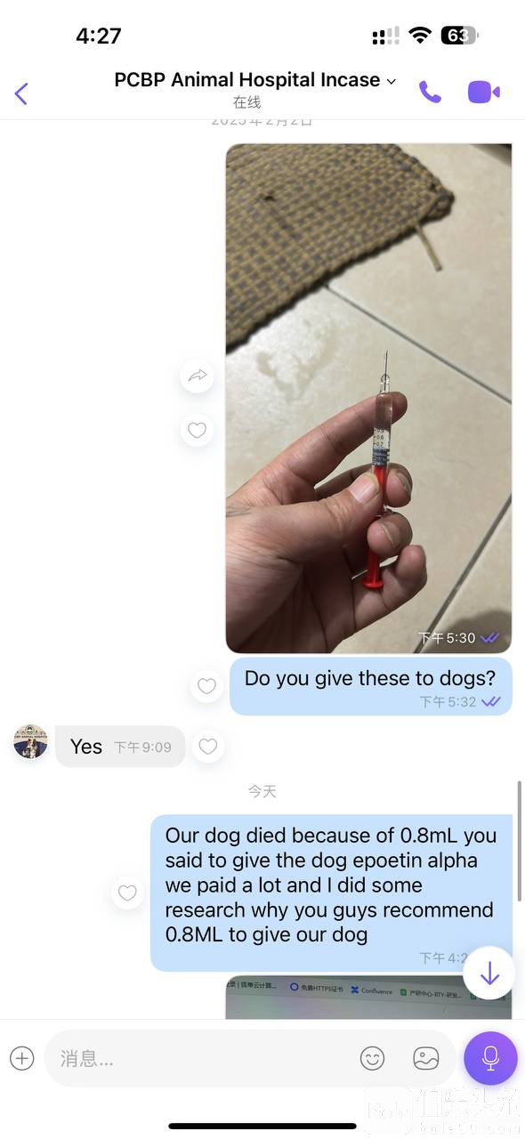 这家PCBP ANIMAL HOSPITAL 宠物医院都是庸医,开的处方Epoetin Alpha 4000 IU 皮下注射剂处方上说的注射0.8ml