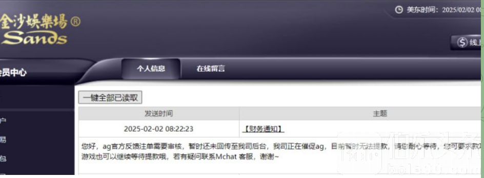 说AG官方要审核  审你妈的大鸡巴  说可以提款  提了这傻逼就是不出 没鸡巴实力赶紧倒台 不要害人