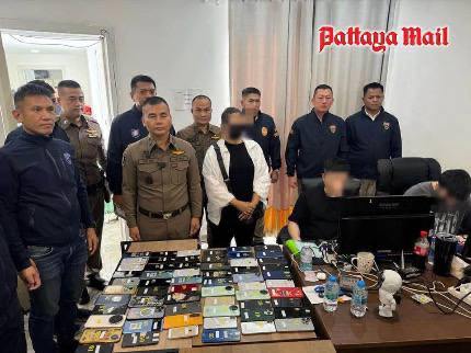 泰国执法部门突袭东芭堤雅Nong Pla Lai的一栋豪华别墅,逮捕12名中国籍嫌疑人(11男1女)。警方缴获10台电脑、61部手机、护照、电子卡及大量现金。