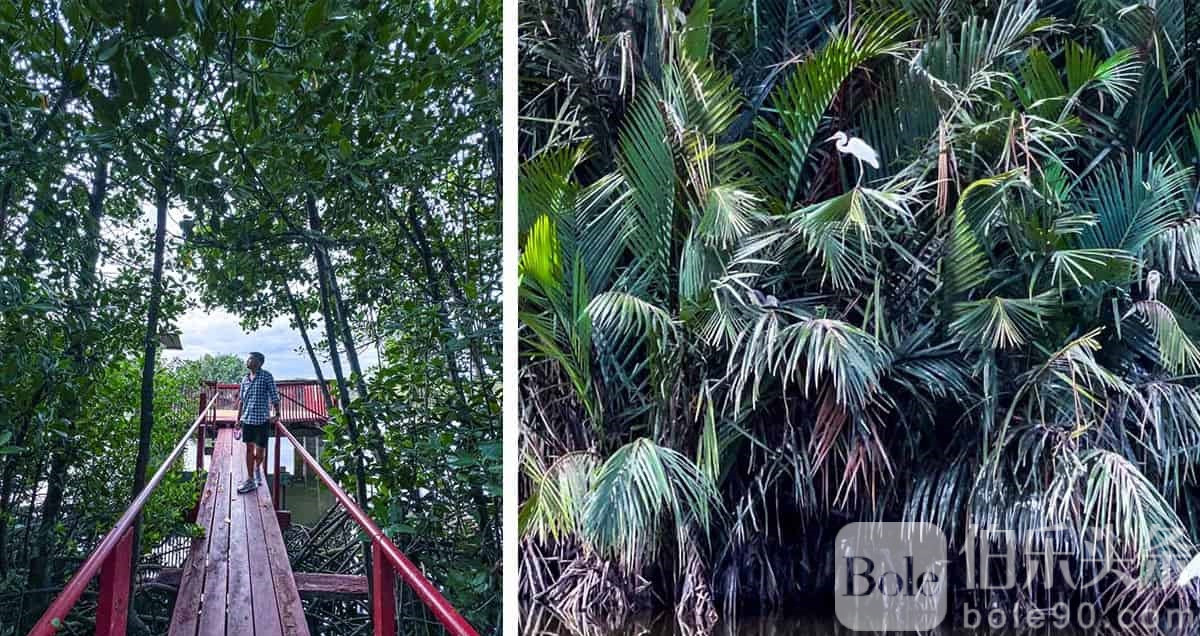 这片广阔的红树林环绕的池塘是一片保护区,大白鹭在这里繁衍生息。其他候鸟也经常在此栖息。