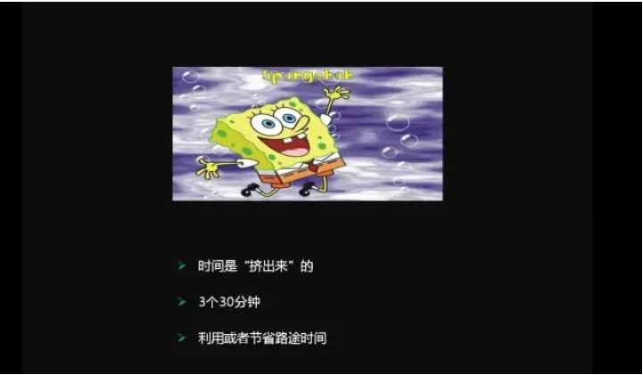 怎么把时间挤出来?这是海绵宝宝,简单来说时间就像海绵里的水,挤一挤总会有的,当然现在也流行另外一种说法,时间就像美女的胸,挤一挤也总是会有的。