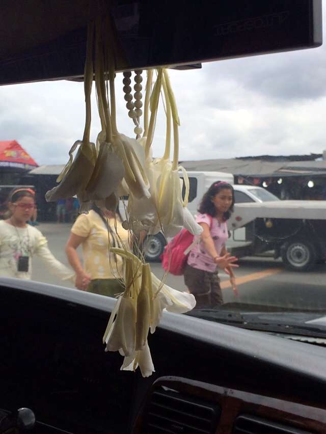 去的路上,路边有个残疾人在卖茉莉花,就买了一串放在车里
